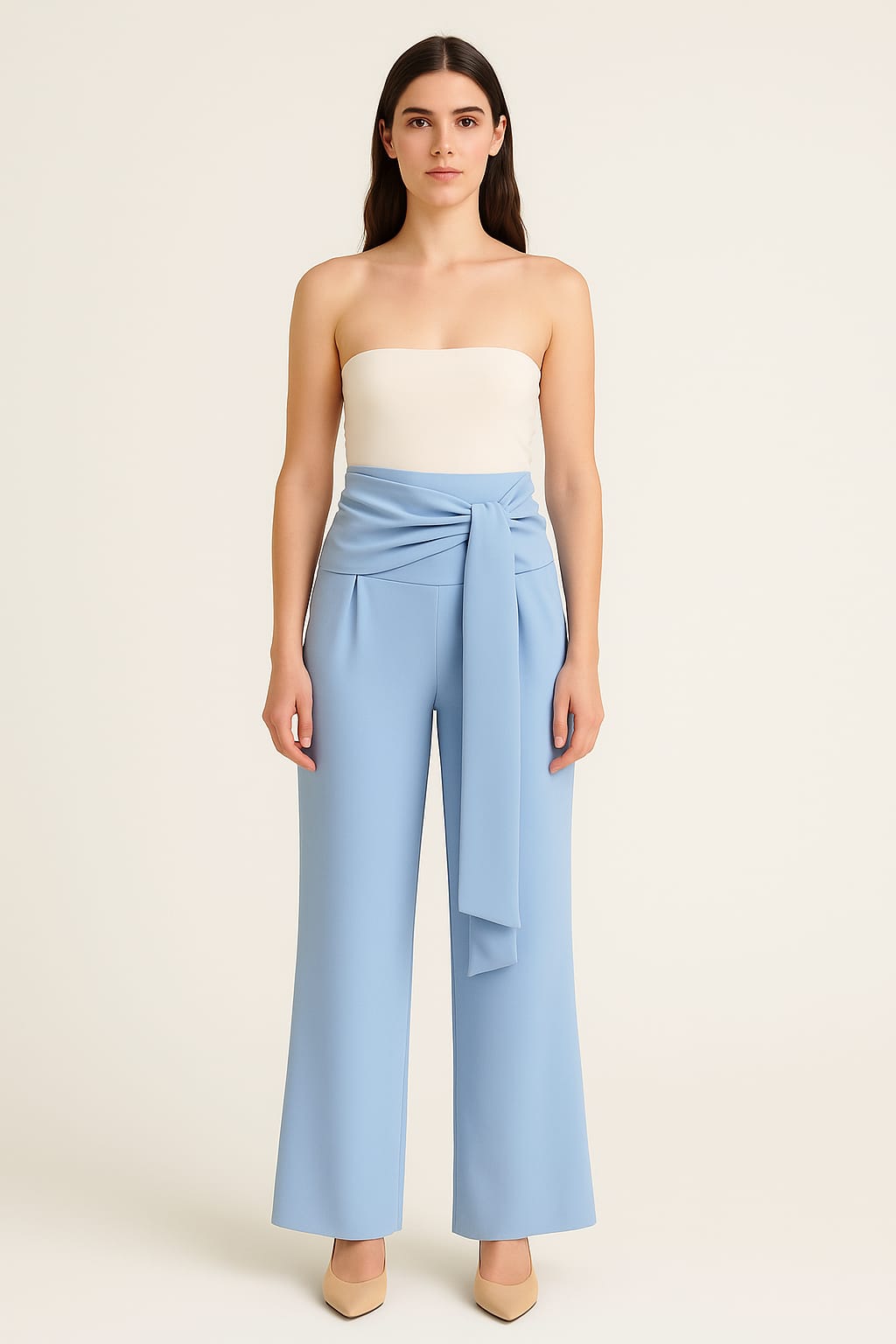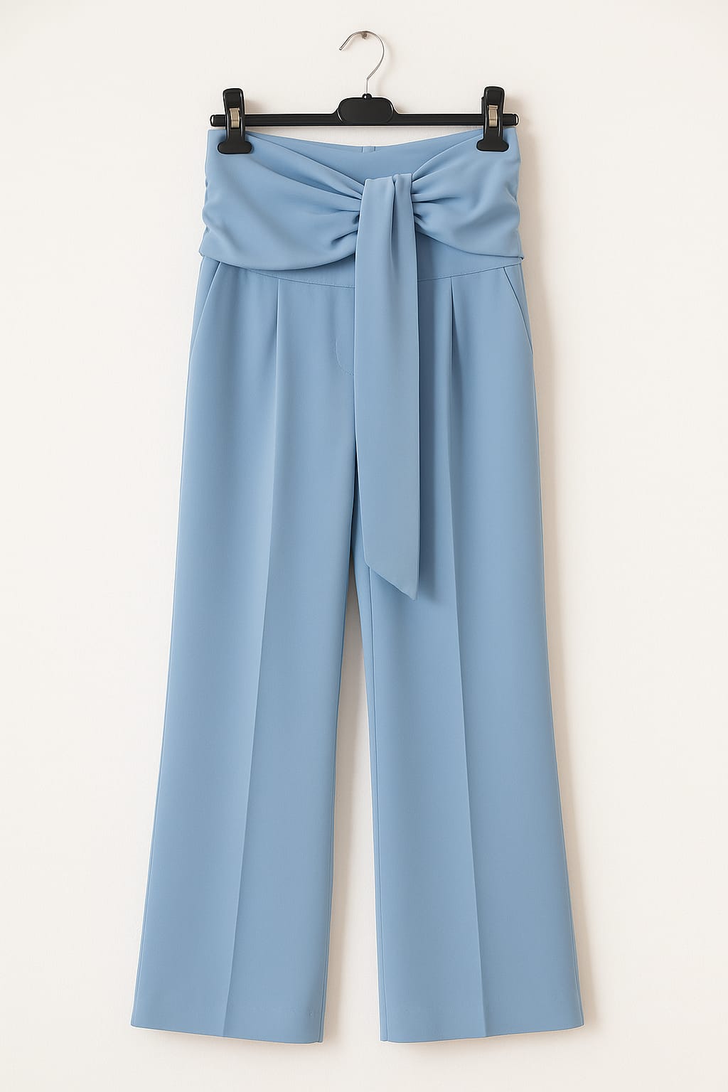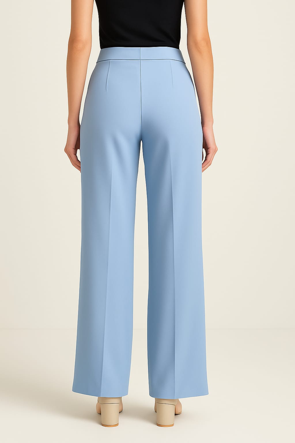 Calça de cinta subida, diferenciada e em tecido clássico de alfaiataria