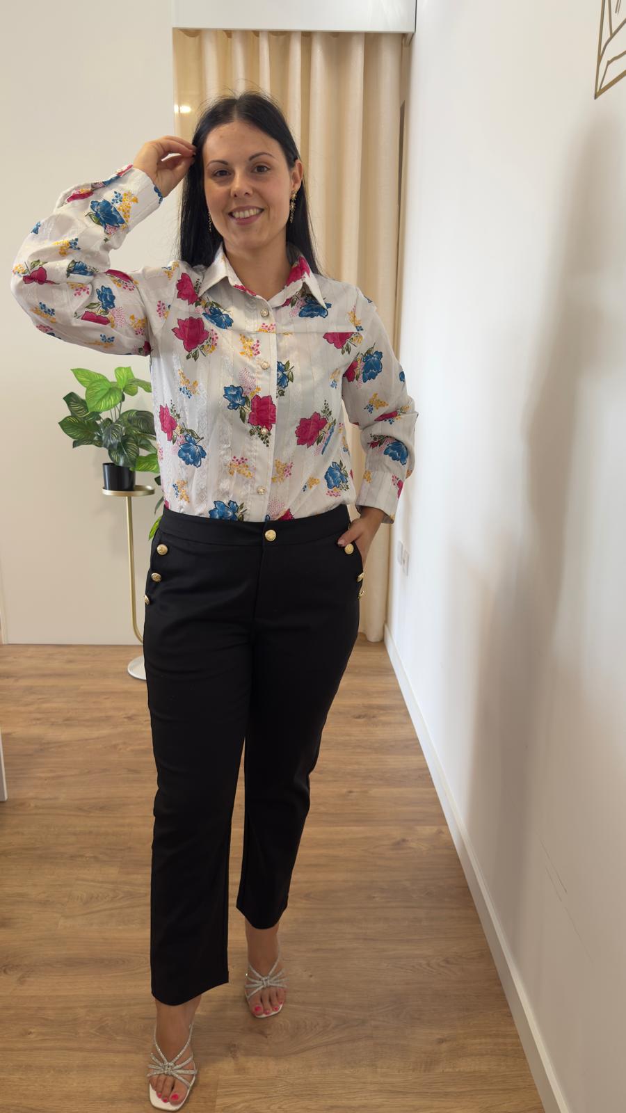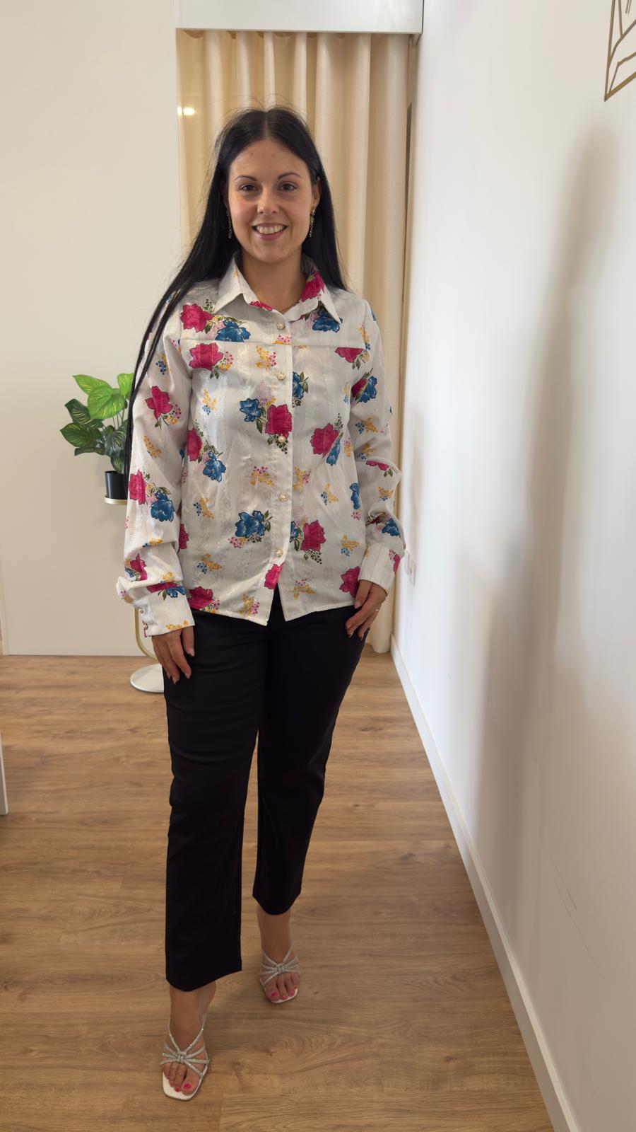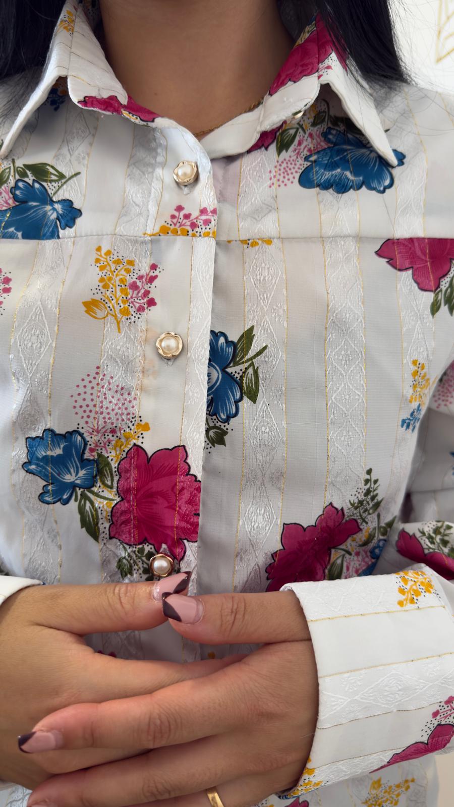 Camisa padrão floral, pormenores maravilhosos em dourado