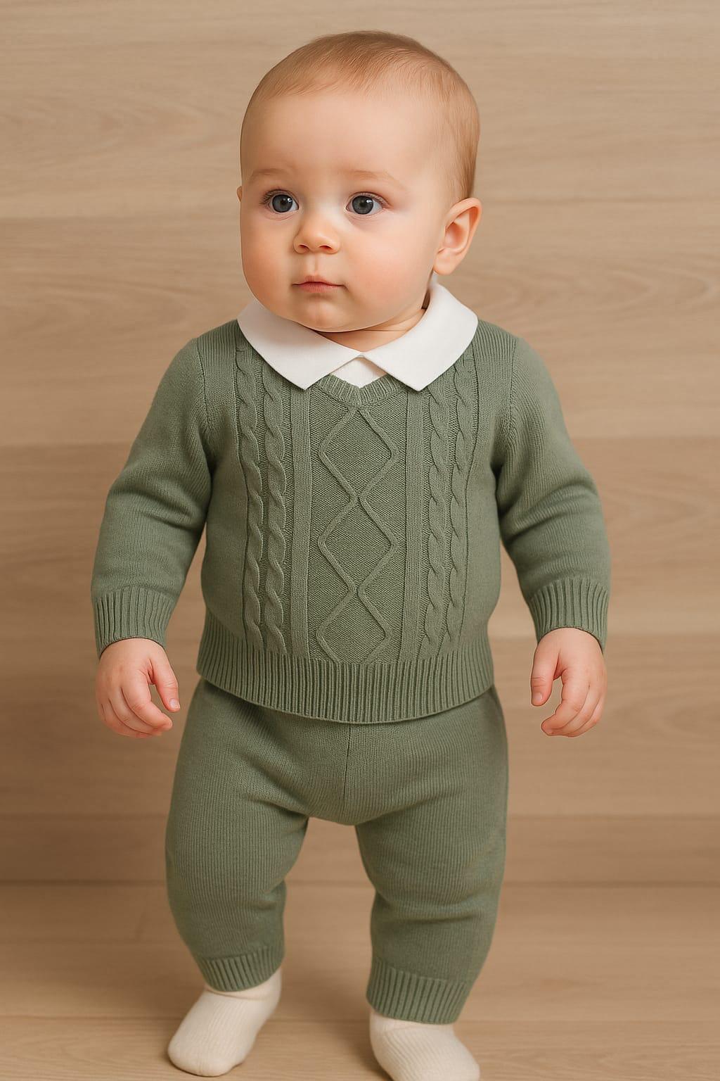 Conjunto maravilhoso em malha Camisola com detalhe na gola