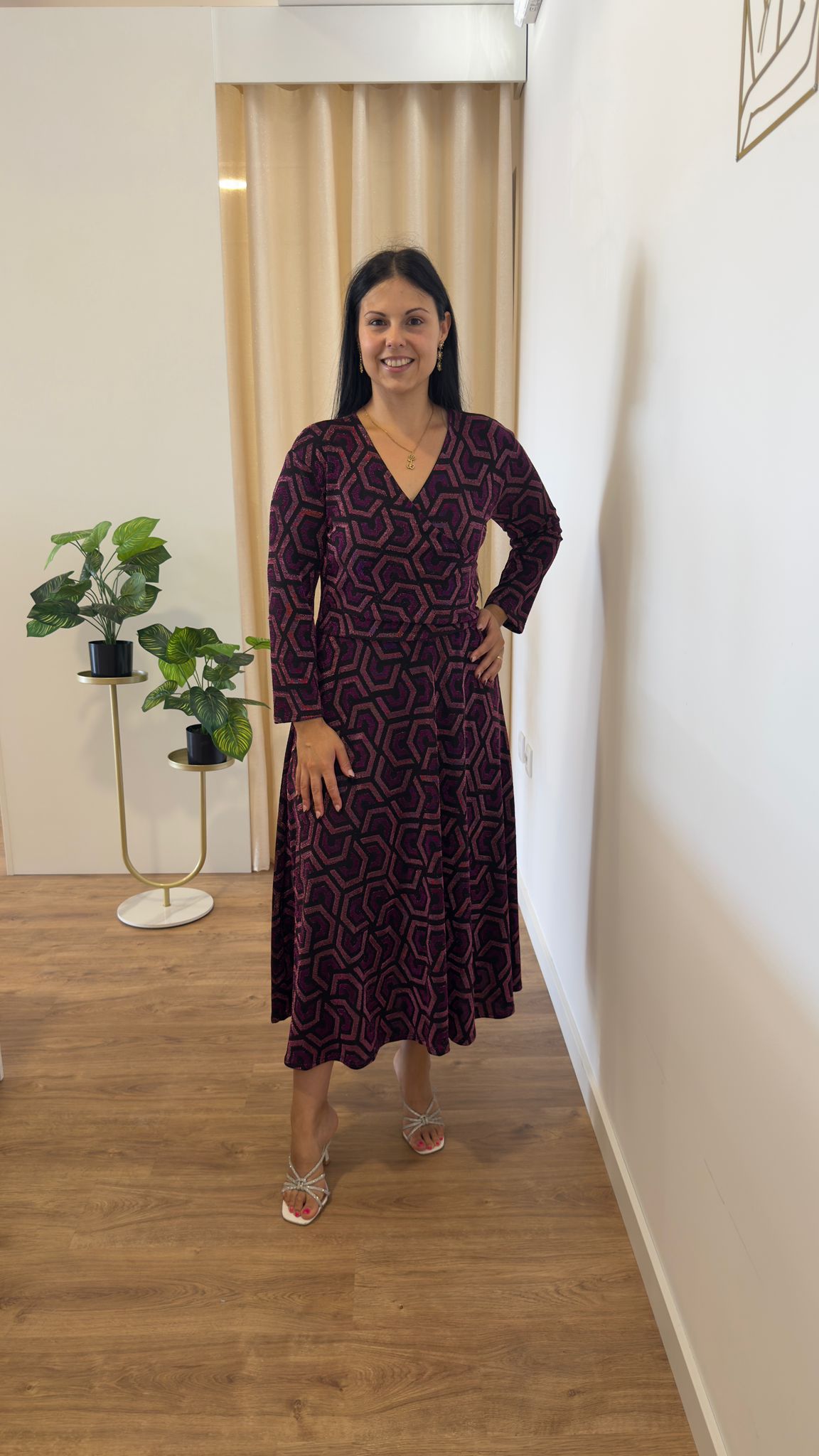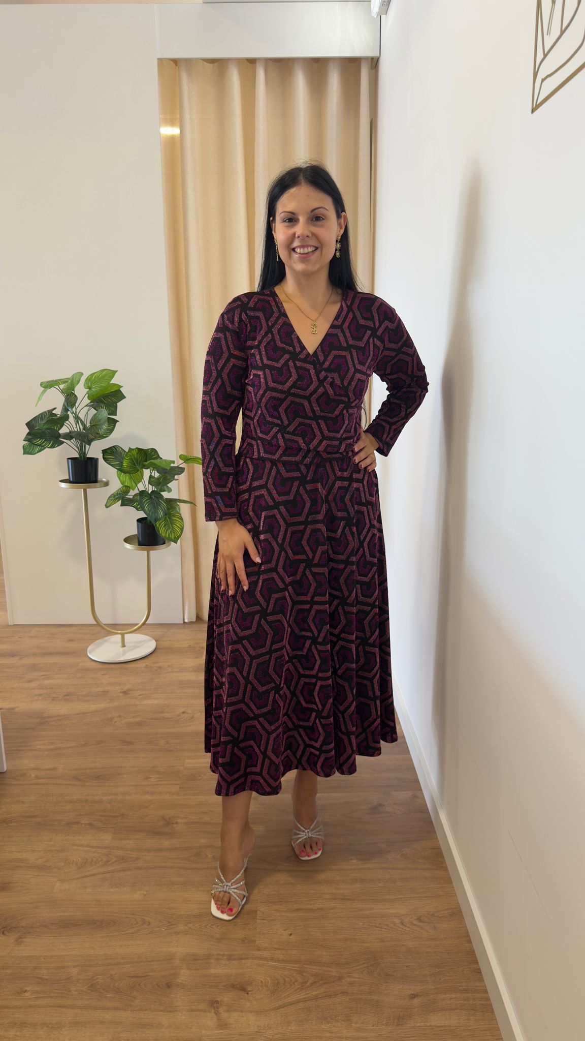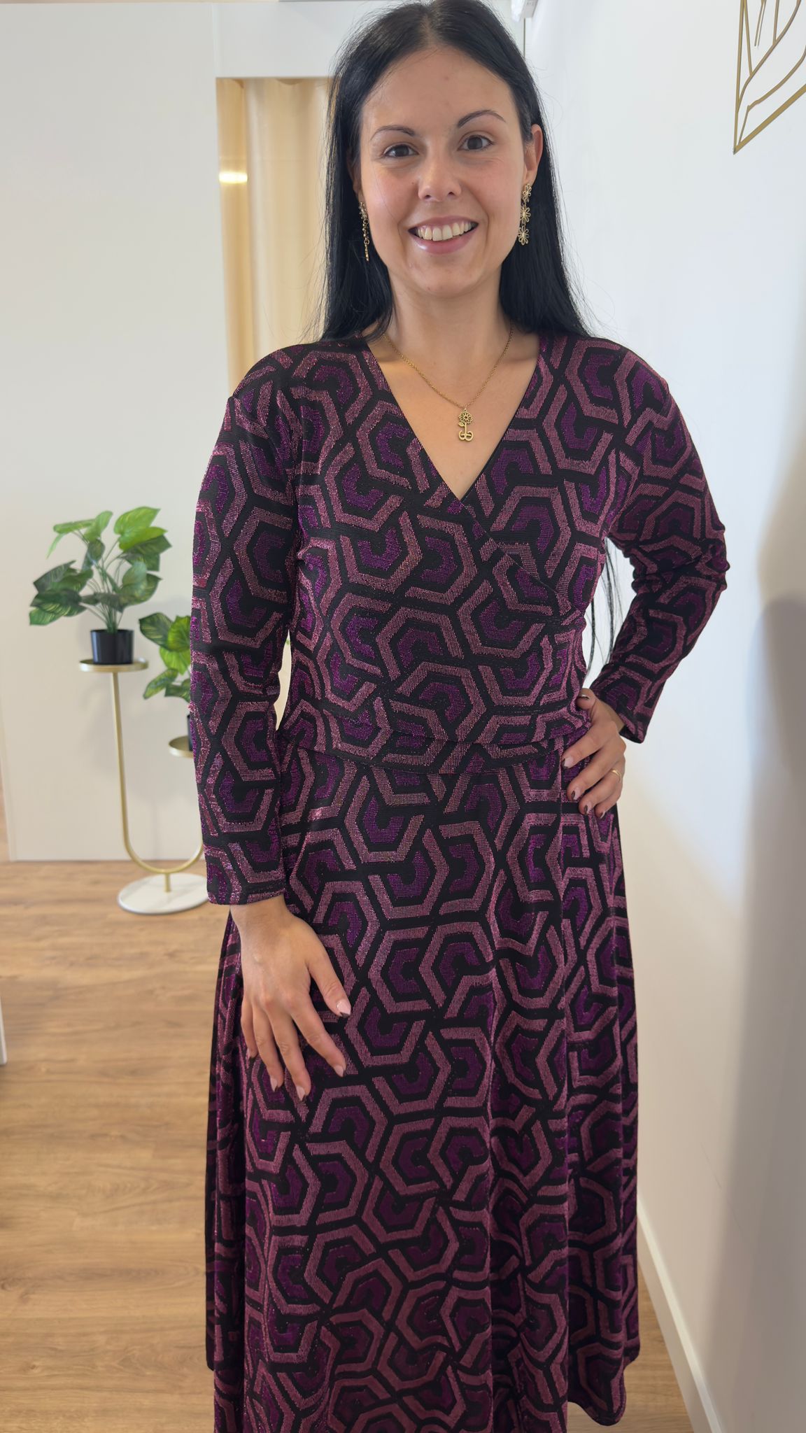 Vestido maravilhoso com decote cruzado, pormenores em rosa e lilás Tamanho único veste do M ao 2XL