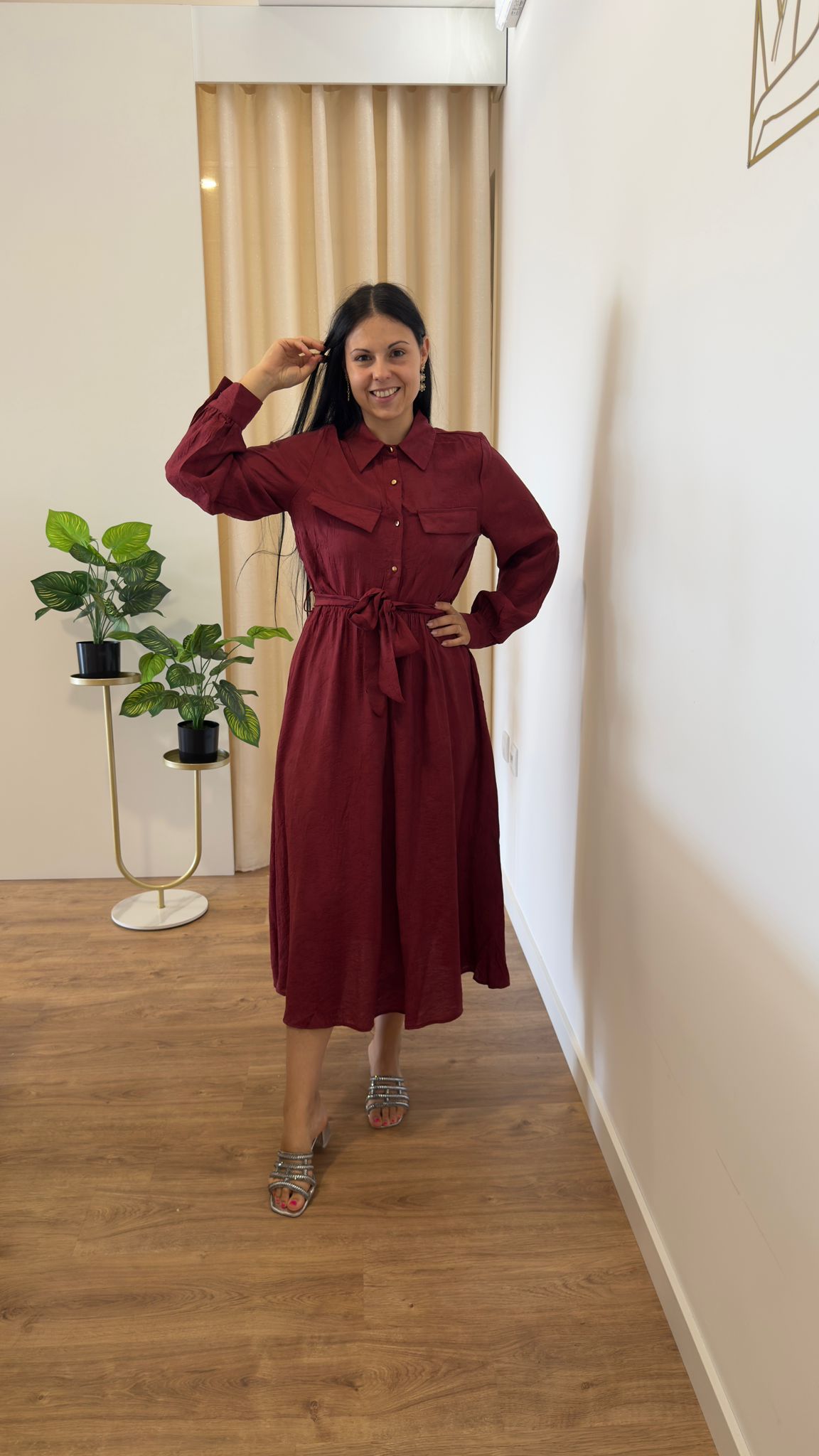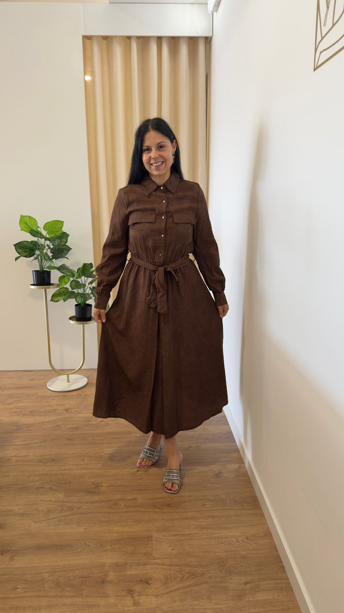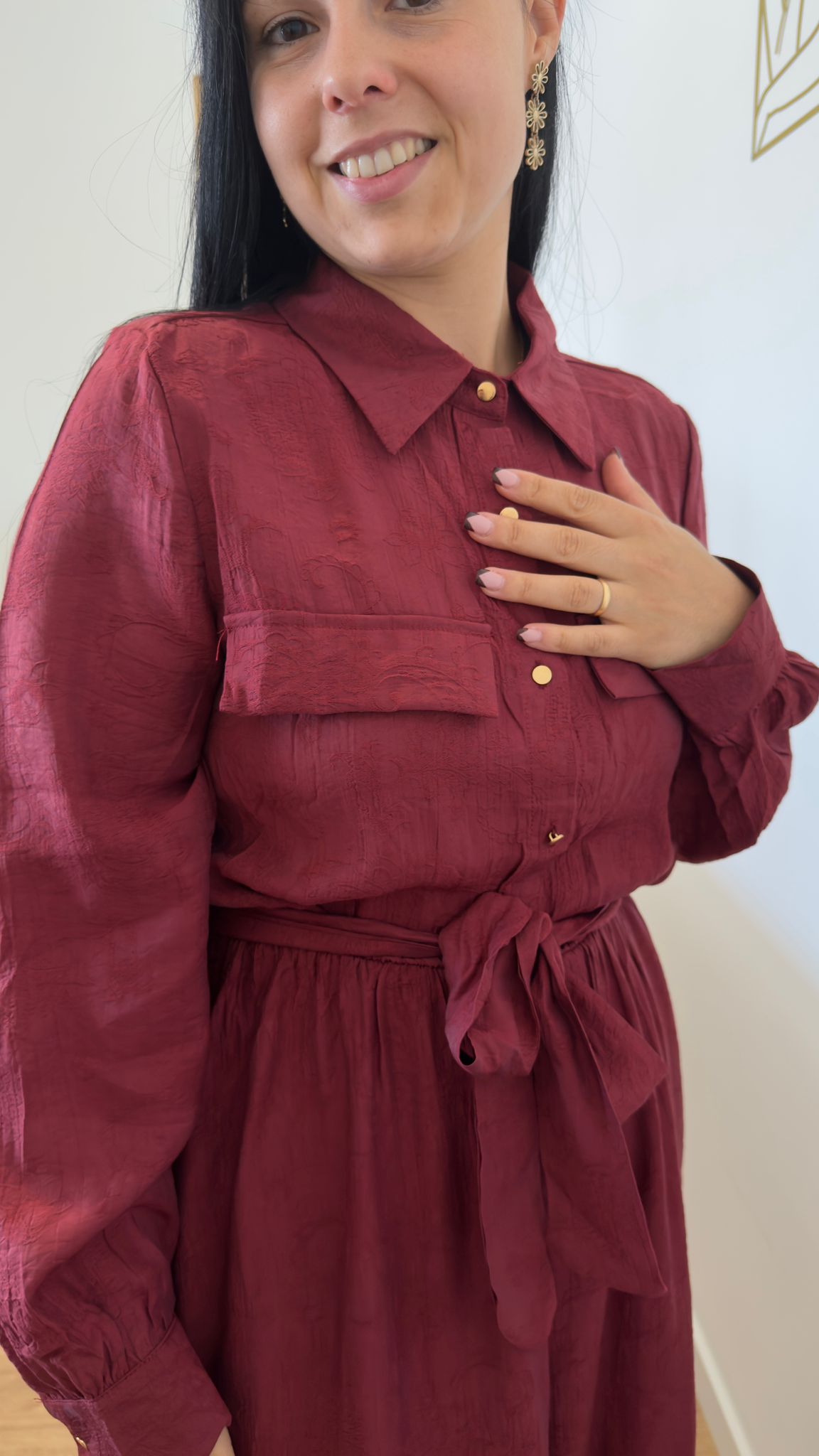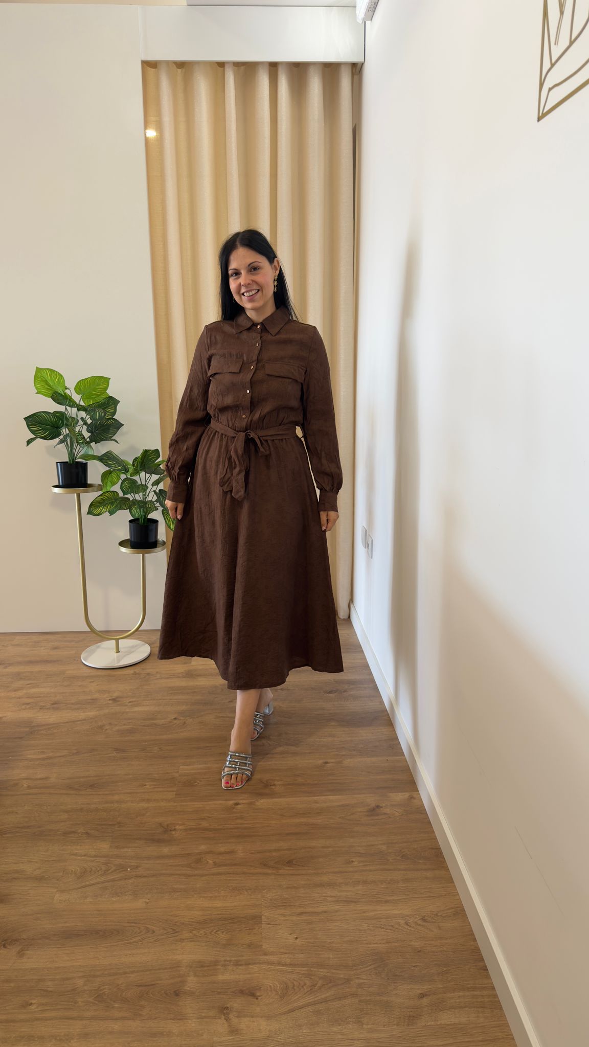 Vestido com botões na parte de cima, elástico abaixo do peito