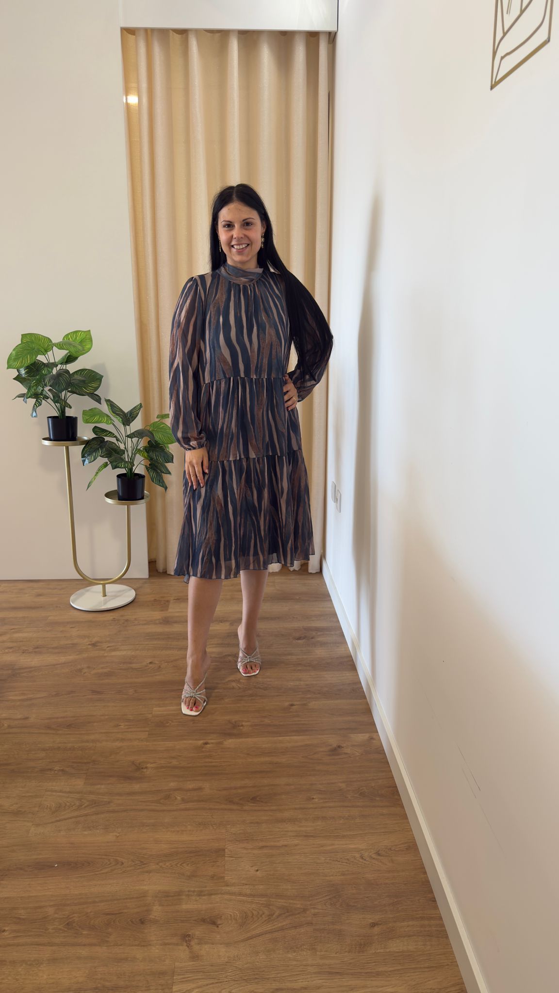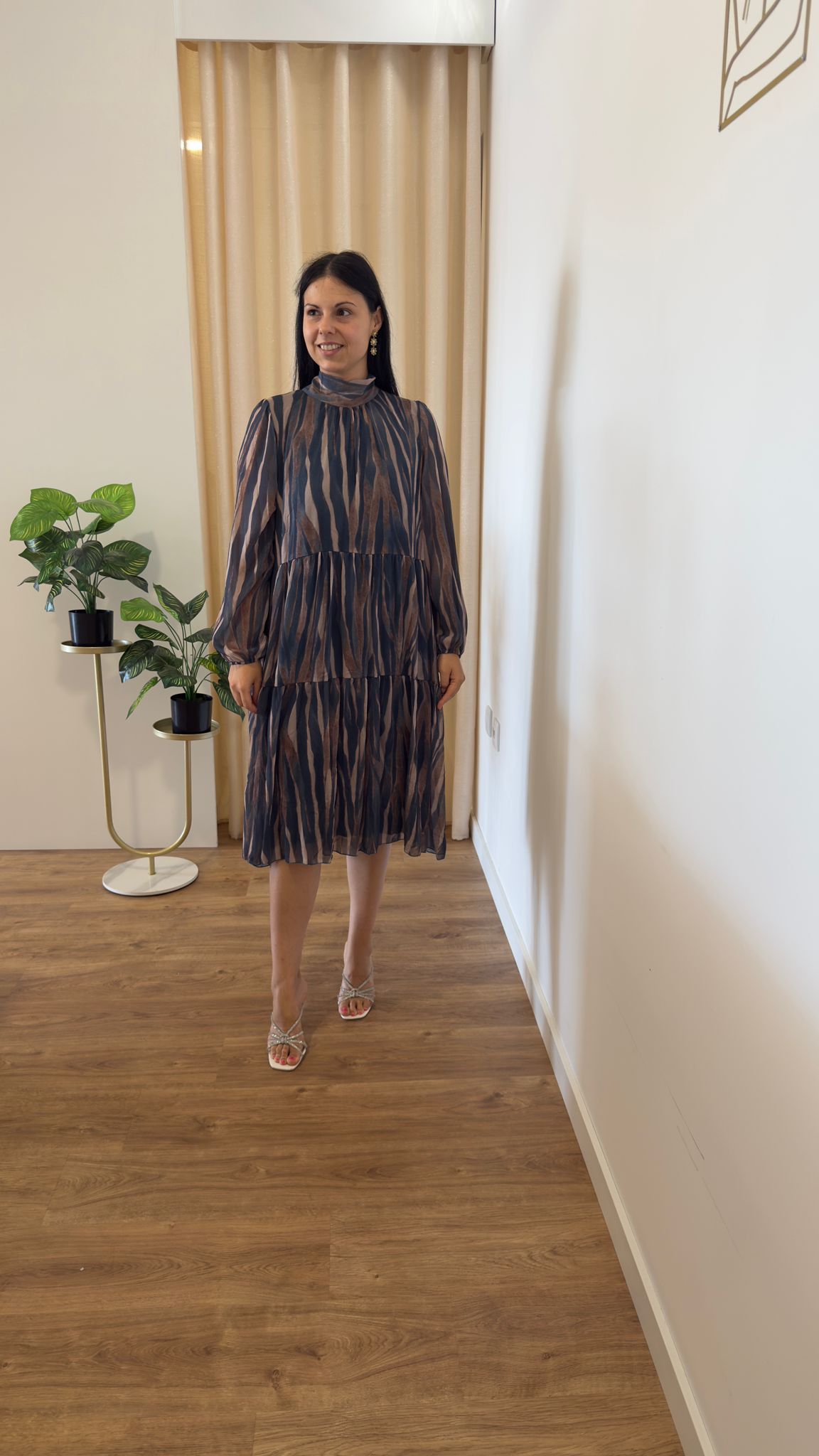 Vestido maravilhoso com padrão zebra Com forro Tamanho M com 56cm de cava a cava e L com 58cm de cava a cava