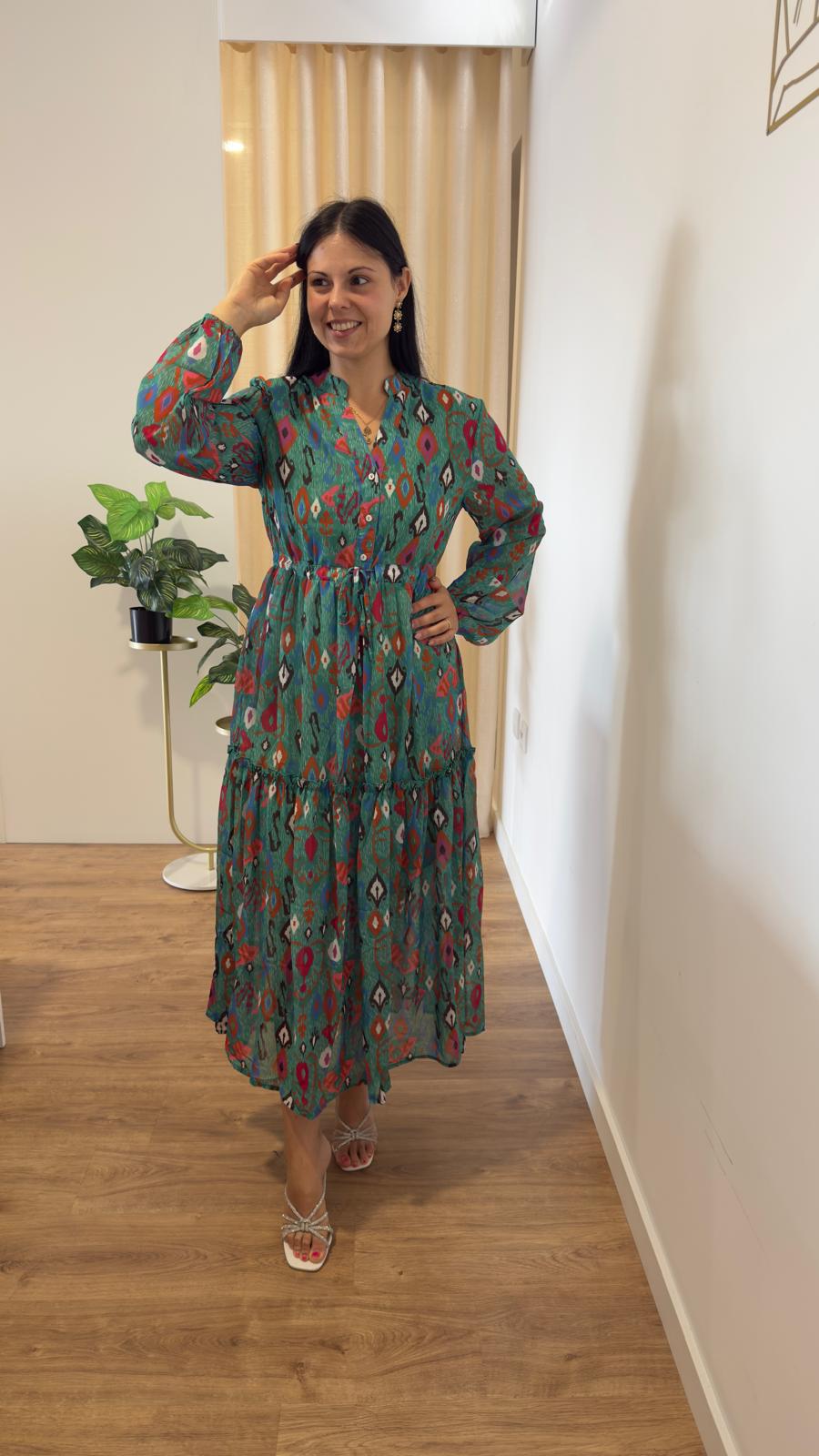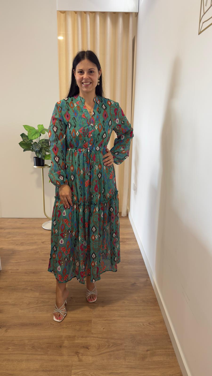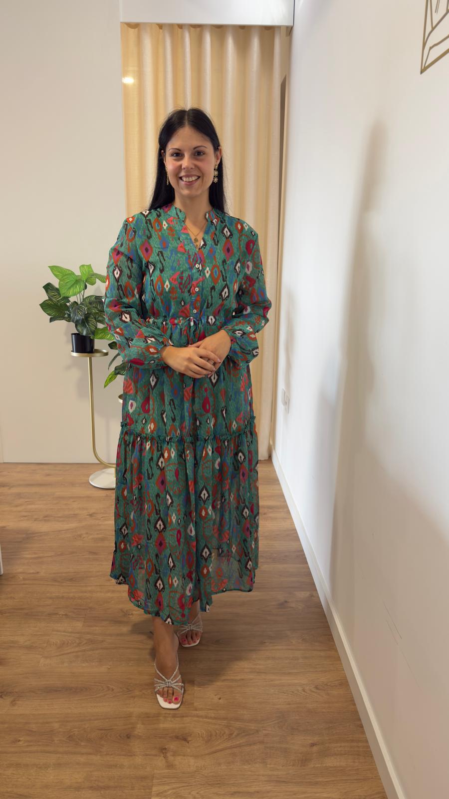 Vestido com estampado diferenciado Botões na parte de cima, elástico abaixo do peito Forrado