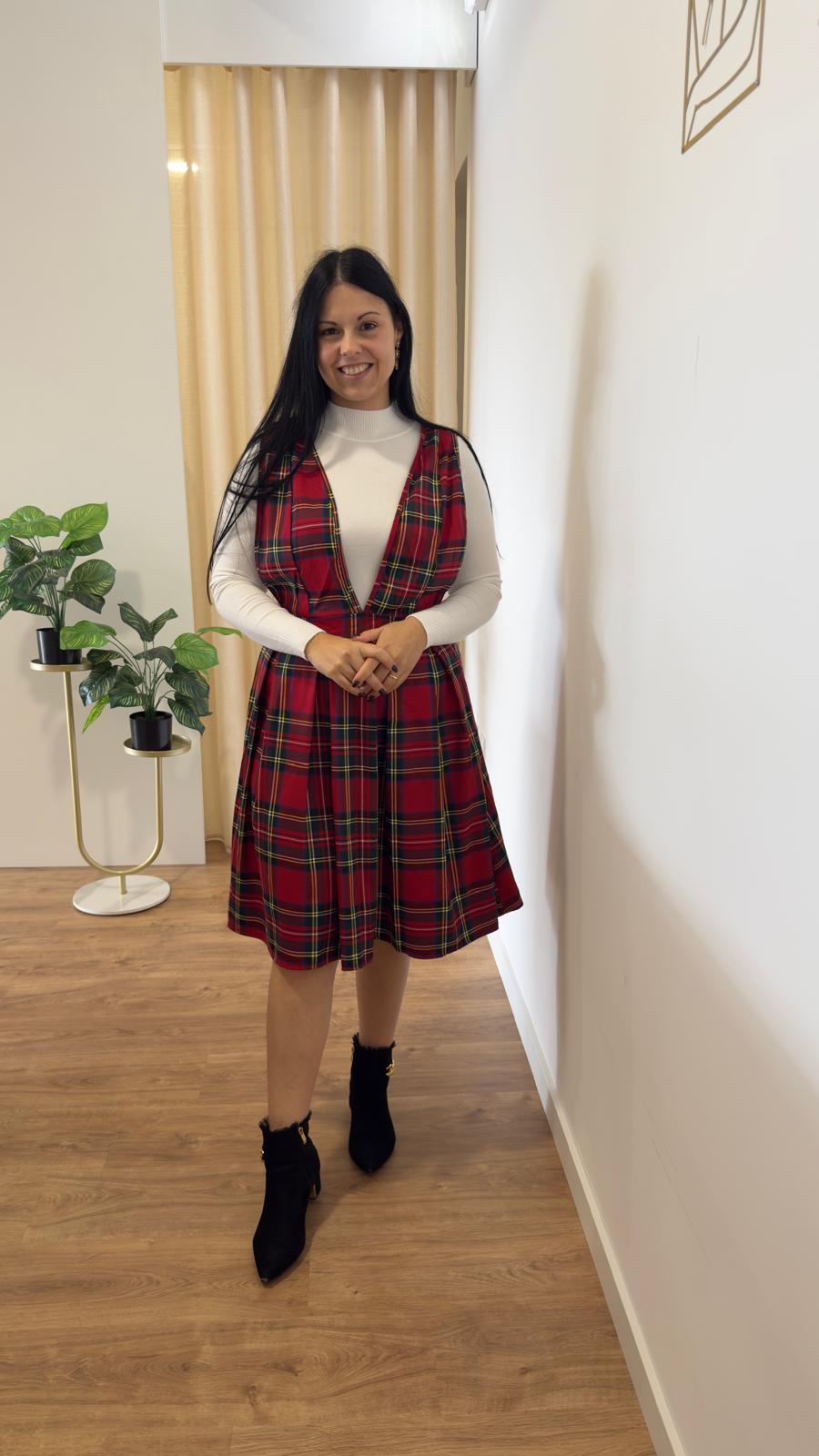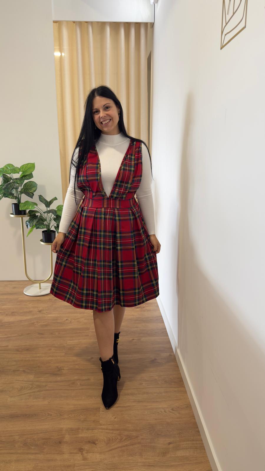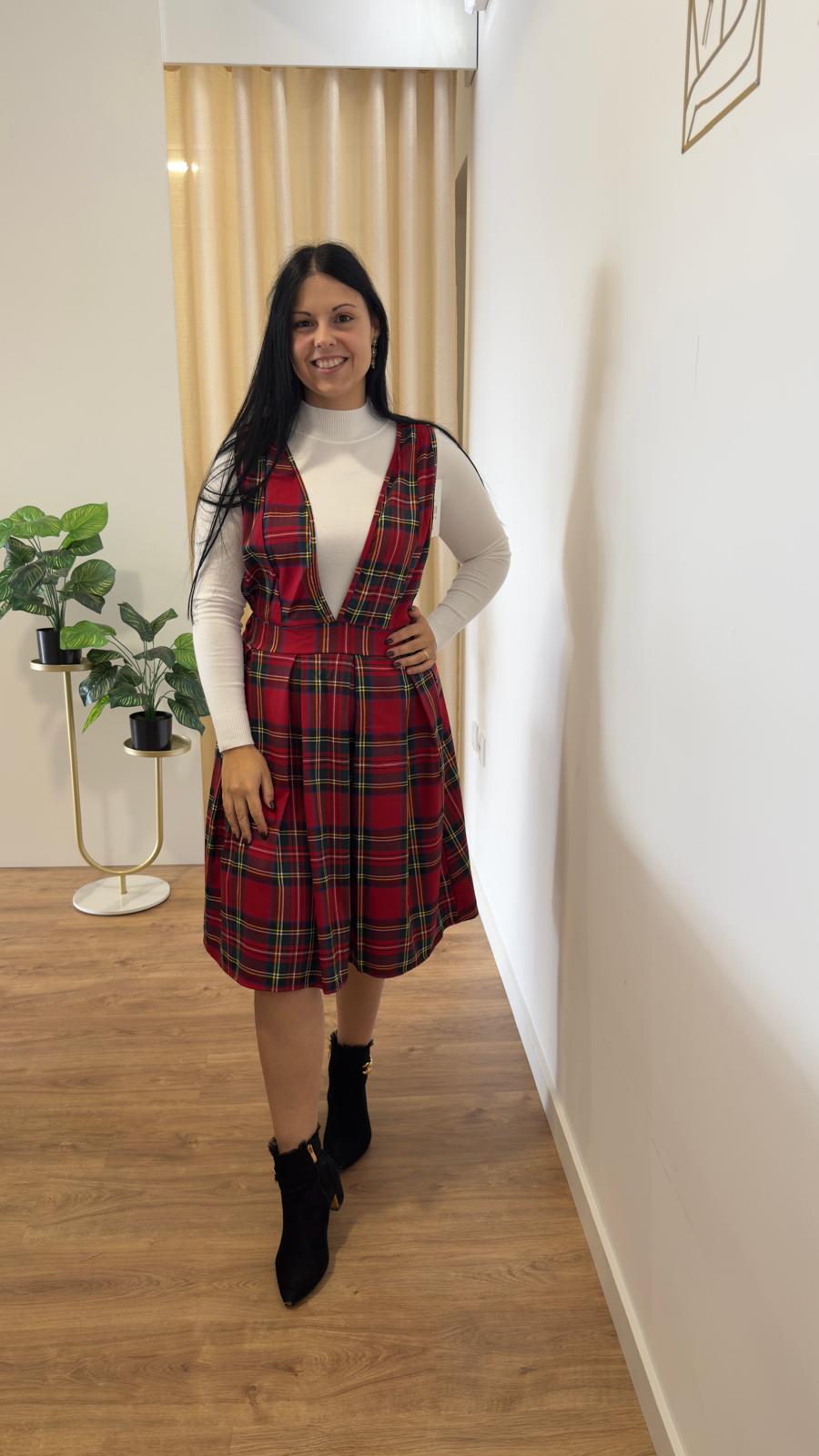 Conjunto maravilhoso de vestido xadrez e camisola de malha de meia gola em branco Tamanho único veste do S ao XL